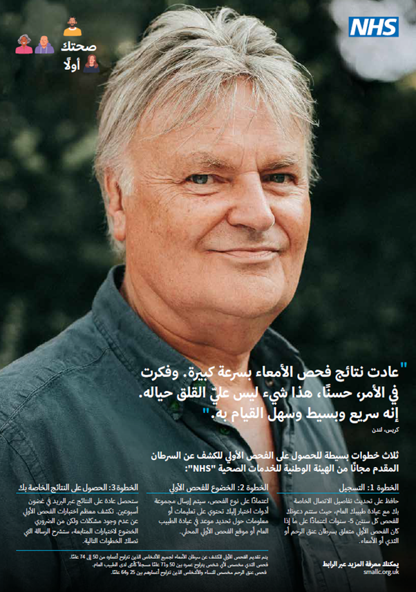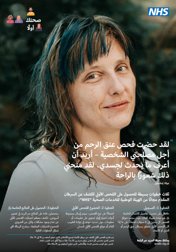 The NHS North Central London Cancer Alliance has developed a cancer screening campaign, Your Health First, for people experiencing homelessness (PEH). The aim is to increase awareness of the three national cancer screening programmes (bowel, breast, cervical), the importance of screening and how to participate. We also want to ensure anyone not registered with a GP can do so if they can provide an address where their screening invitations could be sent. We are also reminding people to make sure their contact details are up to date so they can continue to be invited.