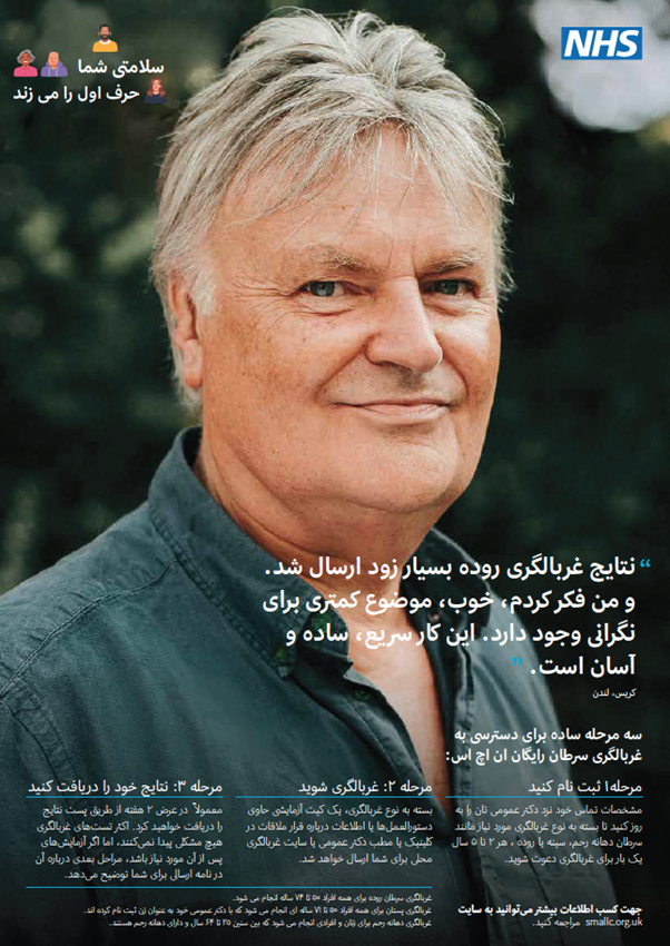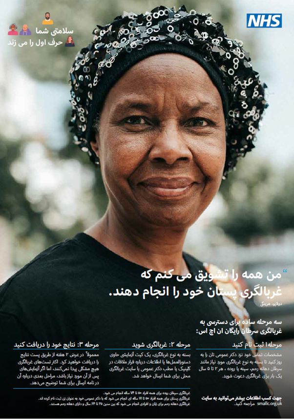 The NHS North Central London Cancer Alliance has developed a cancer screening campaign, Your Health First, for people experiencing homelessness (PEH). The aim is to increase awareness of the three national cancer screening programmes (bowel, breast, cervical), the importance of screening and how to participate. We also want to ensure anyone not registered with a GP can do so if they can provide an address where their screening invitations could be sent. We are also reminding people to make sure their contact details are up to date so they can continue to be invited.