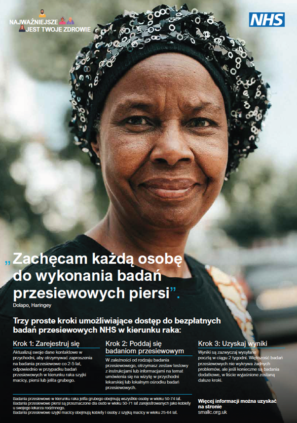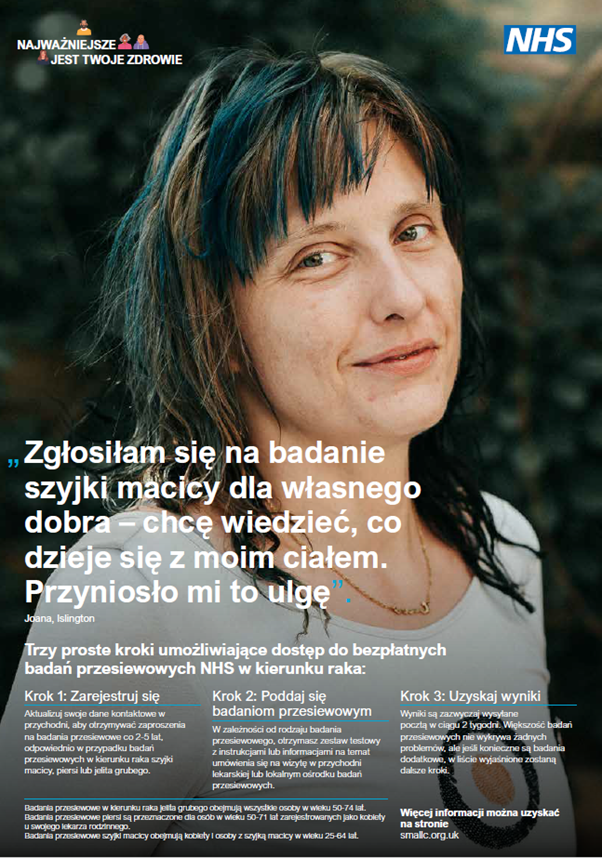 The NHS North Central London Cancer Alliance has developed a cancer screening campaign, Your Health First, for people experiencing homelessness (PEH). The aim is to increase awareness of the three national cancer screening programmes (bowel, breast, cervical), the importance of screening and how to participate. We also want to ensure anyone not registered with a GP can do so if they can provide an address where their screening invitations could be sent. We are also reminding people to make sure their contact details are up to date so they can continue to be invited.