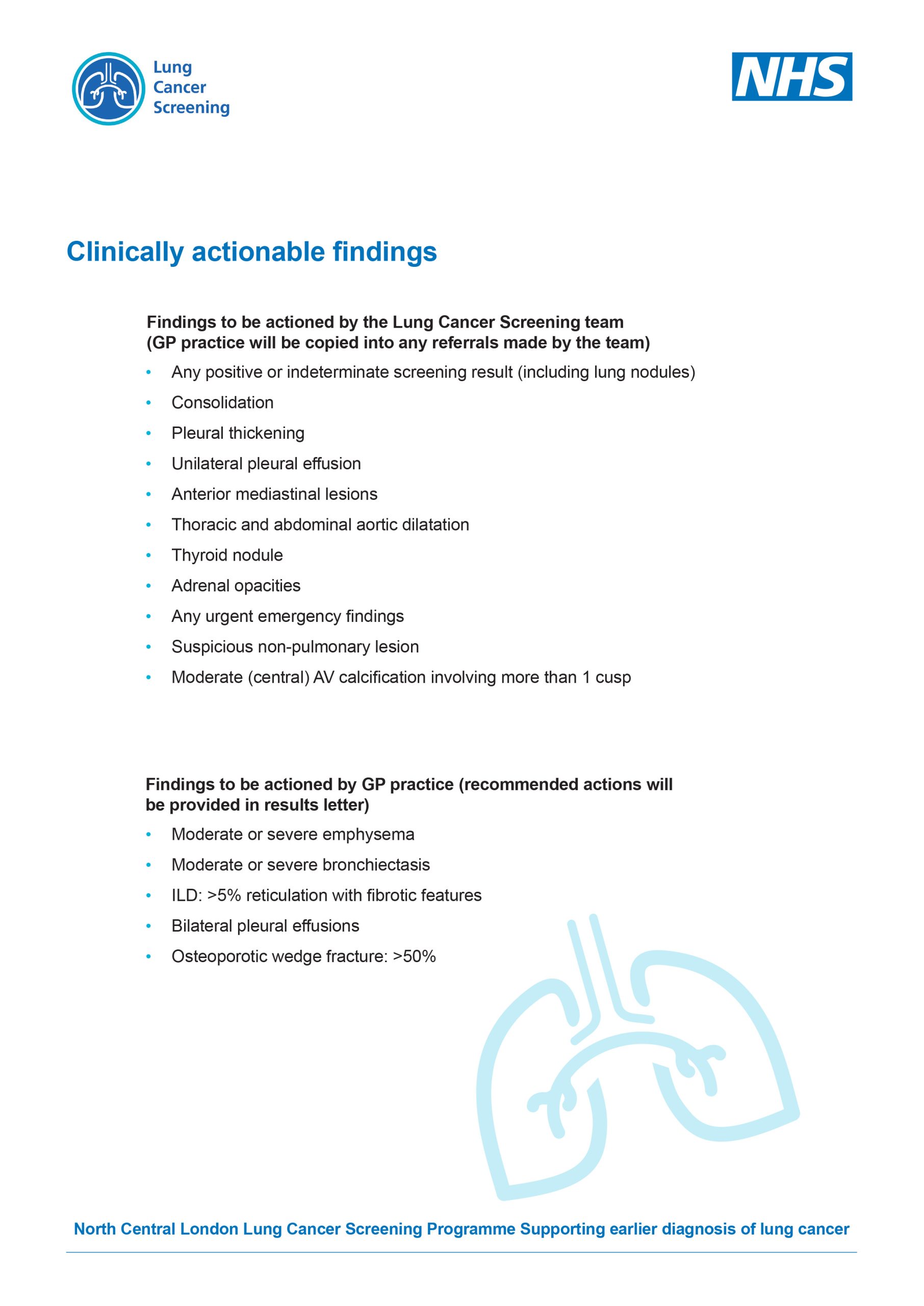 Information for those eligible for screening is available on a dedicated website – lungchecklondon.org. If patients have questions about having Lung Cancer Screening and cannot find the answer on the website or in their invitation letter, they can email: uclh.ncllunghealthcheck@nhs.net or call 0800 652 9589.
